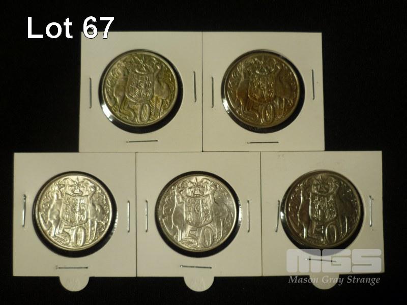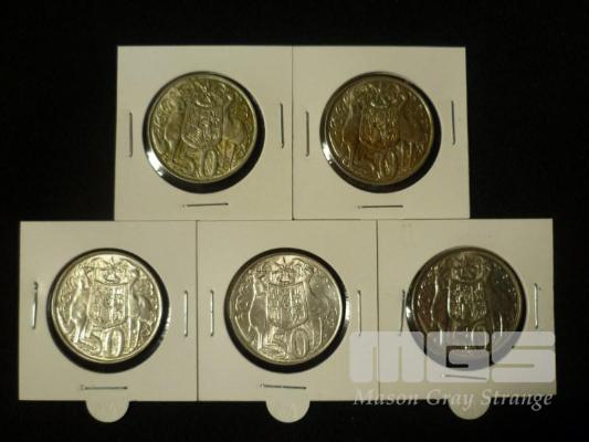 5 X 1966 AUSTRALIAN ROUND 50 CENT PIECES