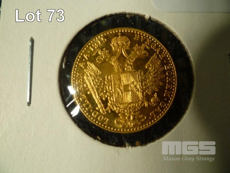 1915 AUSTRIAN DUCAT GOLD COIN, 22 KARAT GOLD, FINE WEIGHT 3.49 GRAMS
