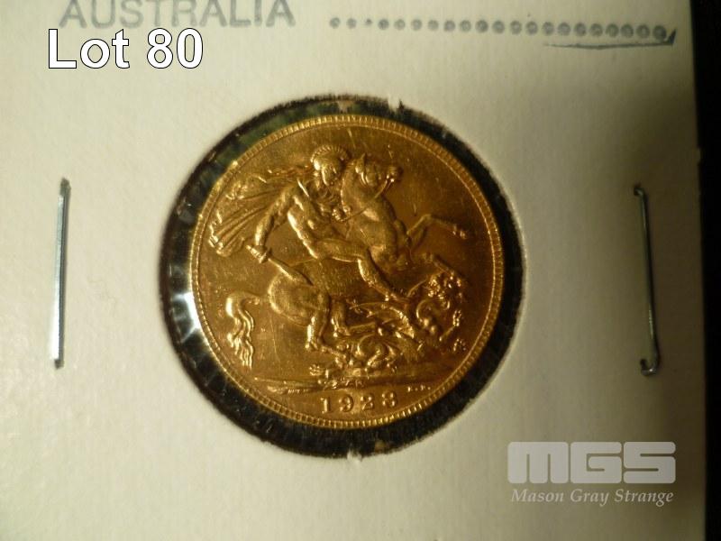 1928 GOLD SOVEREIGN, GEORGE V, 22 KARAT GOLD, FINE WEIGHT 7.322 GRAMS