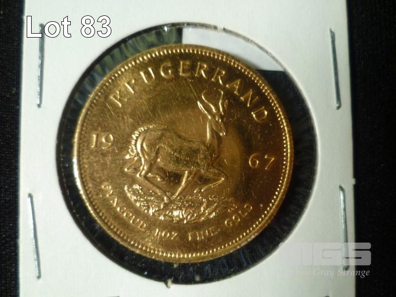 1967 SOUTH AFRICAN KRUGERRAND GOLD COIN, 22 KARAT GOLD, FINE WEIGHT 33.9 GRAMS