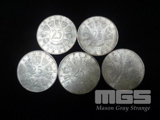 5 X AUSTRIAN 25 SHILLING COINS