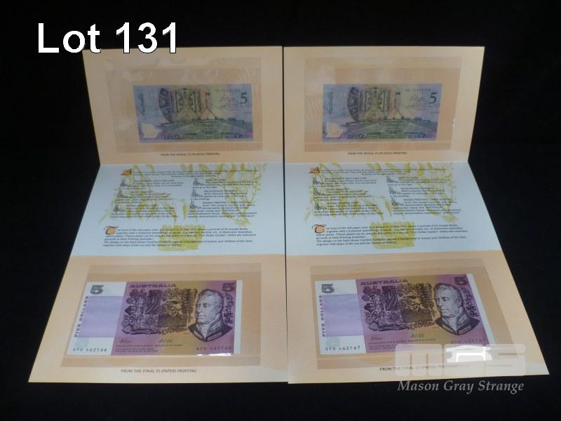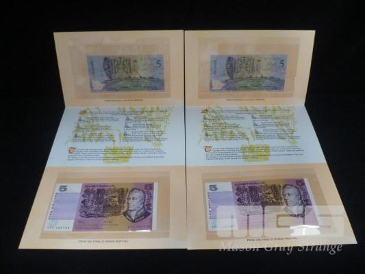 1992 $5 LAST PAPER-1ST POLYMER NOTE CONSECUTIVE FOLDER ( 2 FOLDERS 4 NOTES)