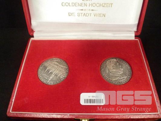 2 X AUSTRIAN 500 SCHILLING, COMMEMORATIVE COINS, 100 JAHRE & 400 JAHRE, IN PRESENTATION BOX