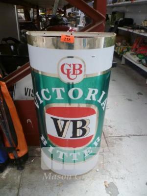 VB BITTER BEER, HALF ROUND WALL ADVERTISING DISPLAY, PLASTIC WITH METAL FRAMED, 98 x 49cm (W)