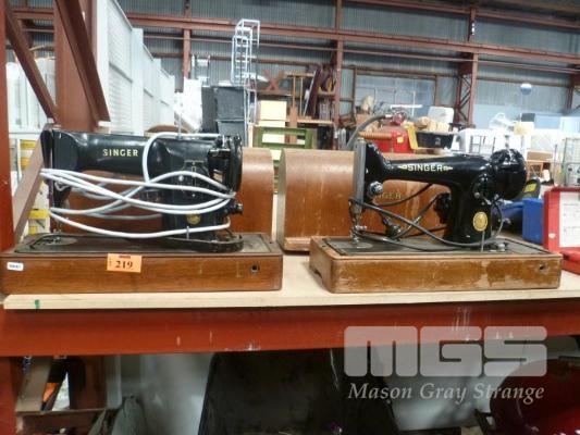 2 x VINTAGE SEWING MACHINES WITH WOODEN COVERS, SINGER SEWING MACH 201K & BRK12S, BOTH MADE IN GREAT BRITAIN