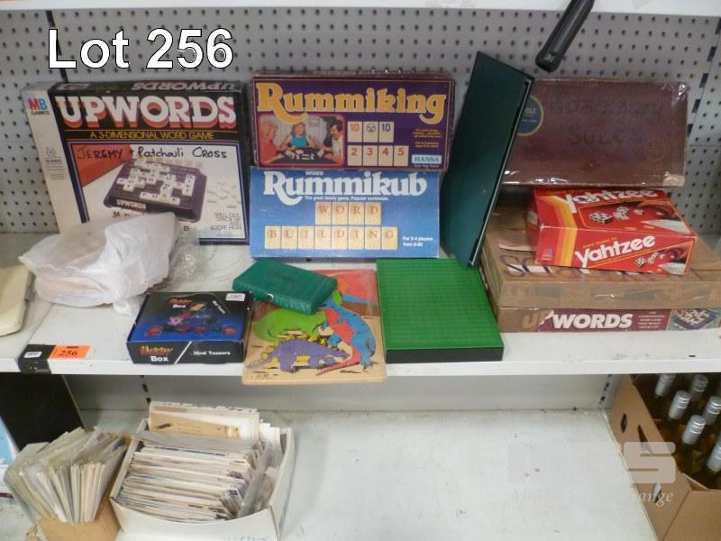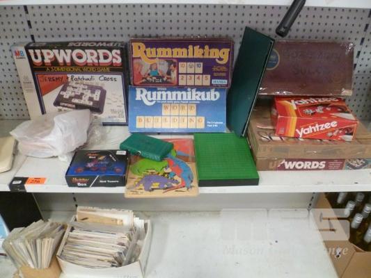 ASSORTED BOARD GAMES INC UPWORDS, CHESS, RUMMIKING, SCRABBLE,E TC
