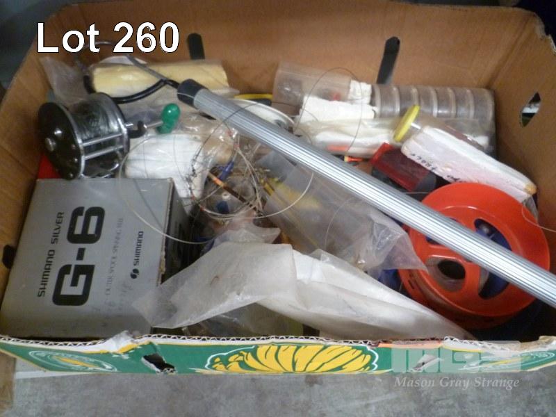 PENN, LONG BEACH, SIDE CAST FISHING REEL & ASSORTED FISHING ACCESSORIES