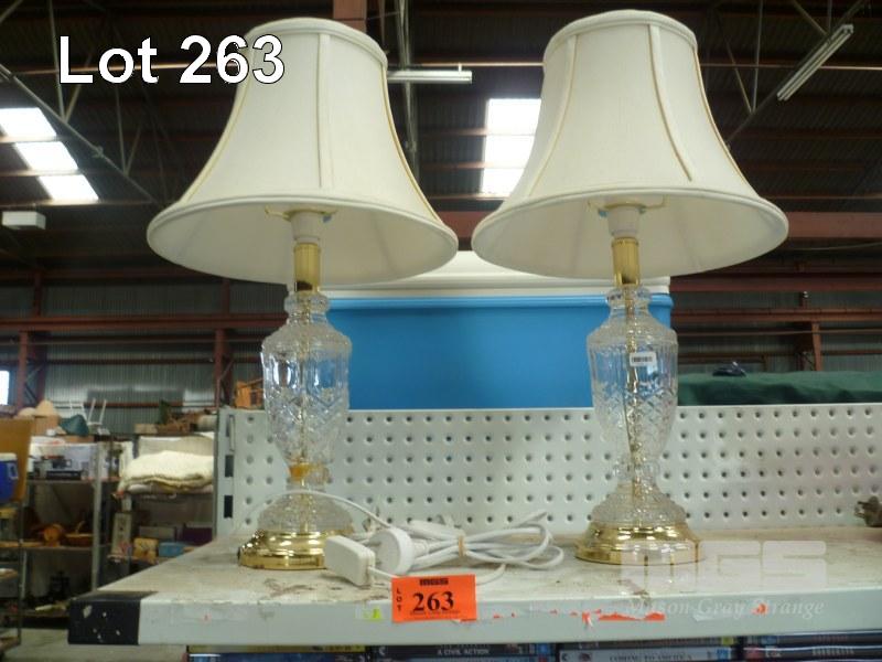 PAIR CRYSTAL BEDSIDE LAMPS, ONE SLIGHT ALL FAULTS
