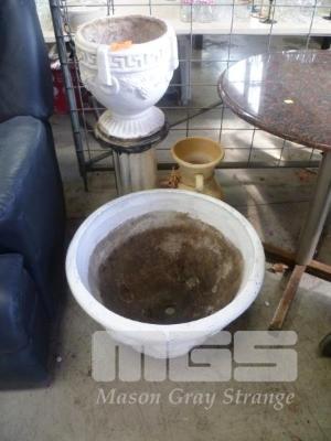 CONCRETE PLANTER POTS, CONCRETE PEDESTAL & LARGE VASE