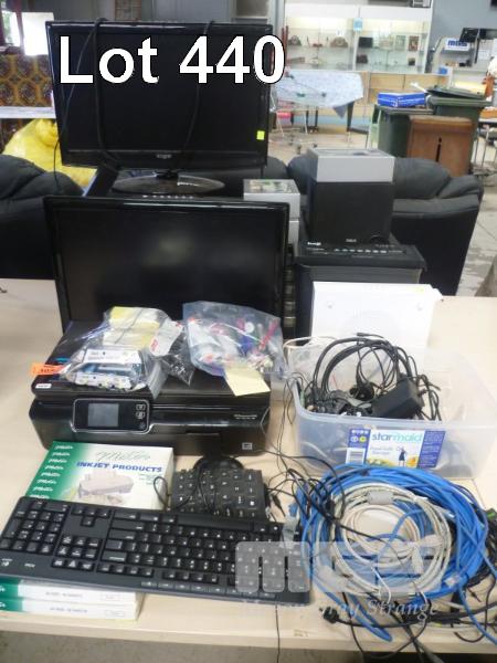 2 x KOGAN 22" LCD TV/DVD COMBOS, (NO REMOTES), 1 x POWER SUPPLY, HP PHOTOSMART 5520, SPEAKERS, MODEM, IT SUNDRIES, ETC