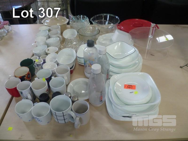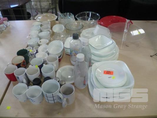 ASSORTED MUGS, BOWLS, PLATES, ETC