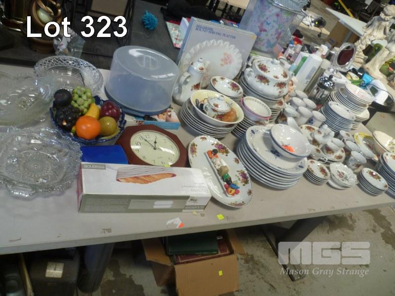 ASSORTED DINNERWARE, GLASS BOWLS, ETC, 1 x TABLE