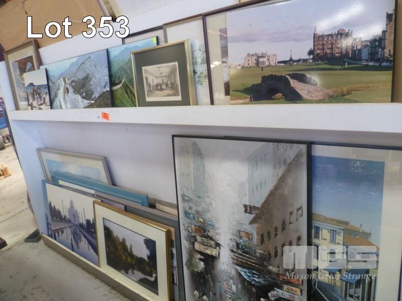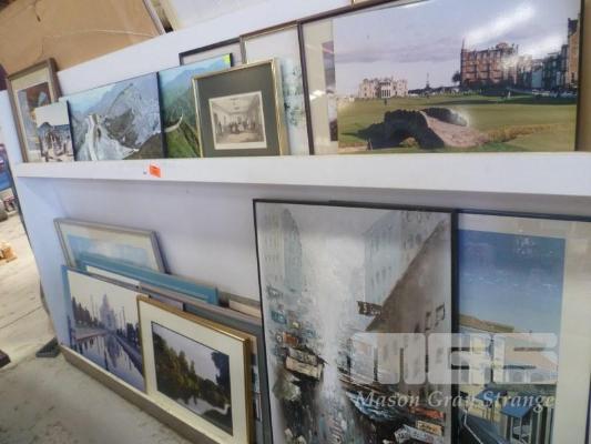 ASSORTED BLOCK MOUNT & FRAMED PRINTS, PAINTINGS & LITHOGRAPHS, 2 TIERS