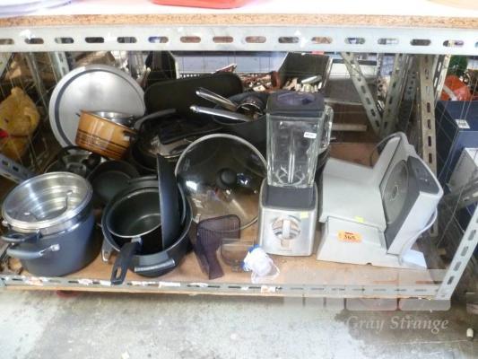 ASSORTED COOKWARE, SUNBEAM BLENDER, MEAT SLICER, ETC