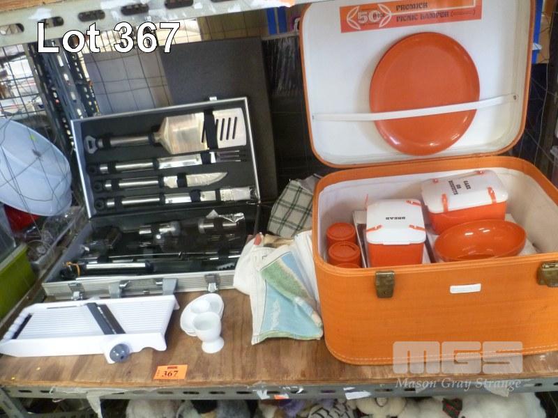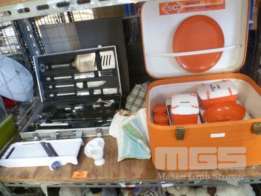 KRISTAWARE MID-CENTURY PICINIC SET, 4 PERSON & BBQ TOOL SET