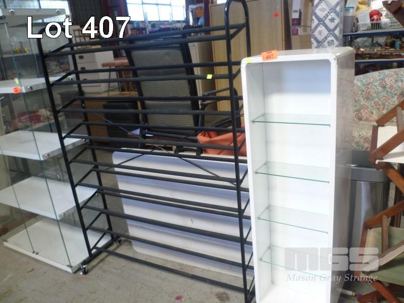 MOBILE SHOE RACK, ROTATING DISPLAY SHELF UNIT, GLASS SHELVES