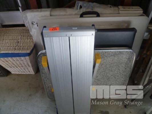 2 x TRESTLE TABLES, CARD TABLE, PICNIC TABLES & PLATFORM STAND
