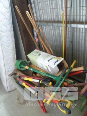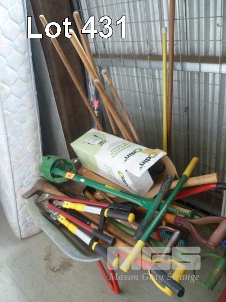 WHEELBARROW & ASSORTED GARDEN TOOLS