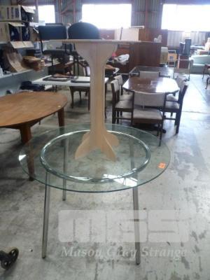 ROUND DINING TABLE, GLASS TOP, CHROME FRAME WITH MDF OCCASIONAL TABLE
