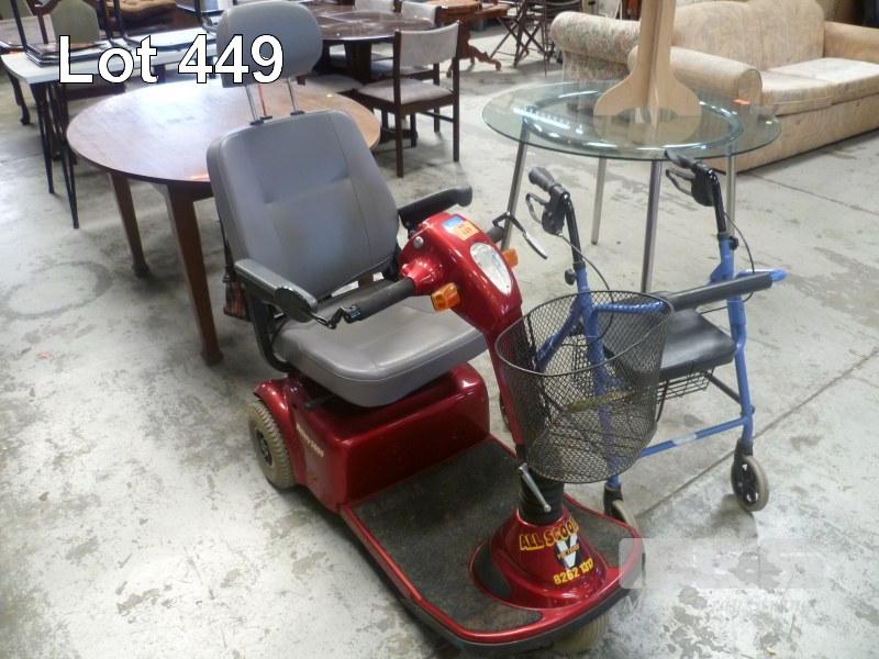 VICTORY 5000, 3 WHEEL MOBILITY SCOOTER (BATTERIES- ALL FAULTS) WITH MOBILITY WALKER