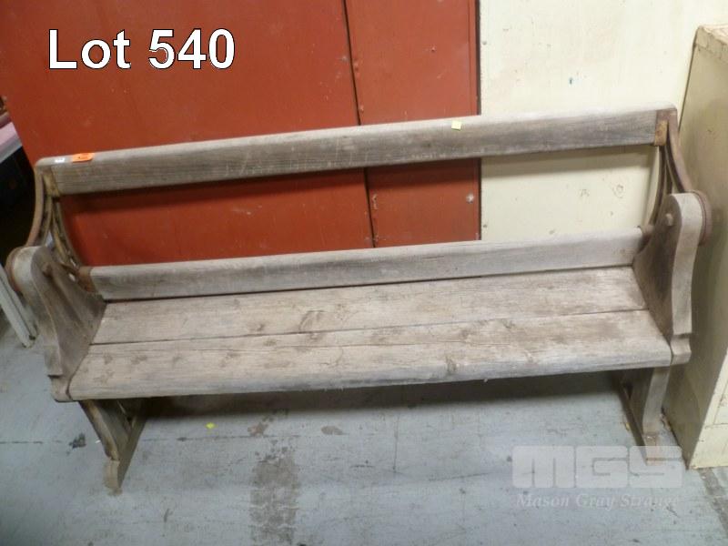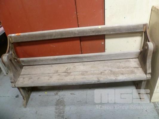 REVERSIBLE VINTAGE TIMBER RAILWAY BENCH, CAST IRON HINGES