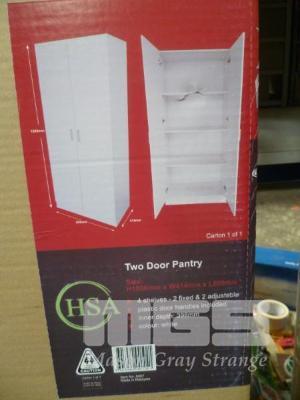WHITE PANTRY, 2 DOOR, (FLAT PACKED)