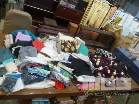 ASSORTED RETRO FABRIC/MATERIAL INC COTTON/LACE, WOOL, ZIPPERS, ETC