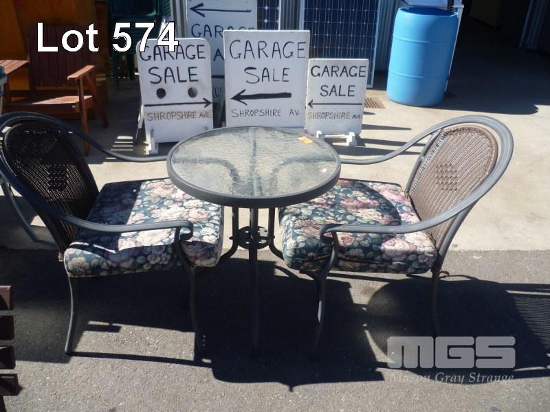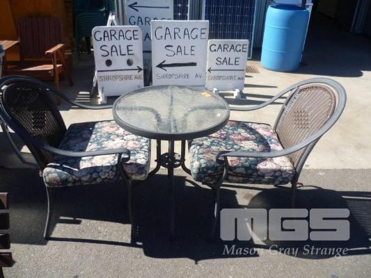 ALUMINIUM FRAME 3 PIECE OUTDOOR SETTING INC ROUND TABLE & 2 x ARM CHAIRS