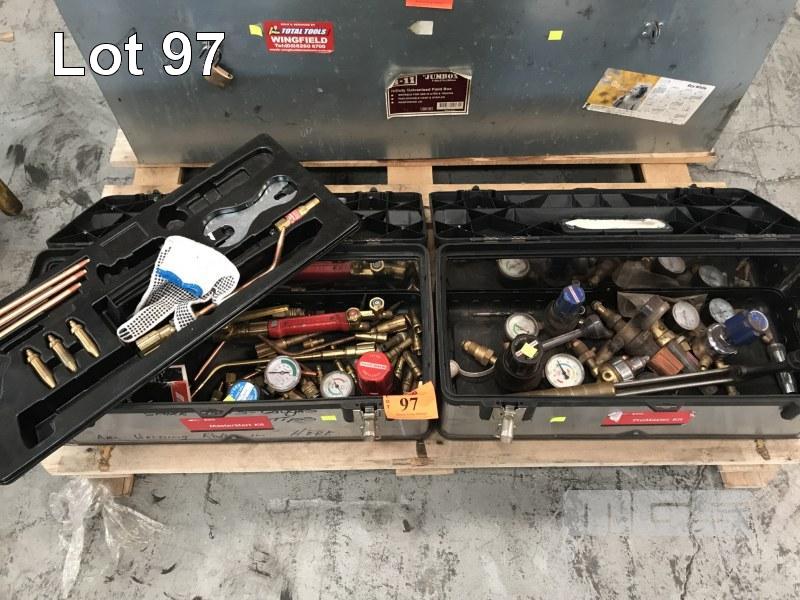 OXY KIT, BOC MASTERSTART ASSORTED TIPS, CONNECTORS, REGULATORS, CUTTING TORCH, GOGGLES & 2 x CASES