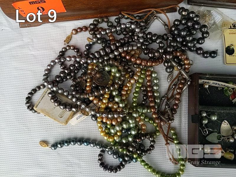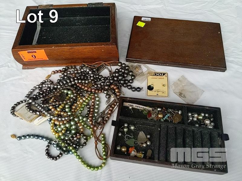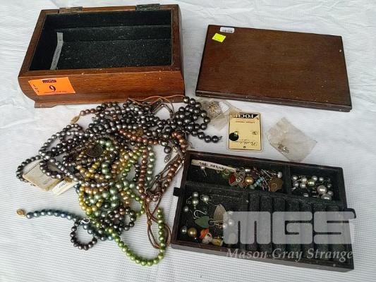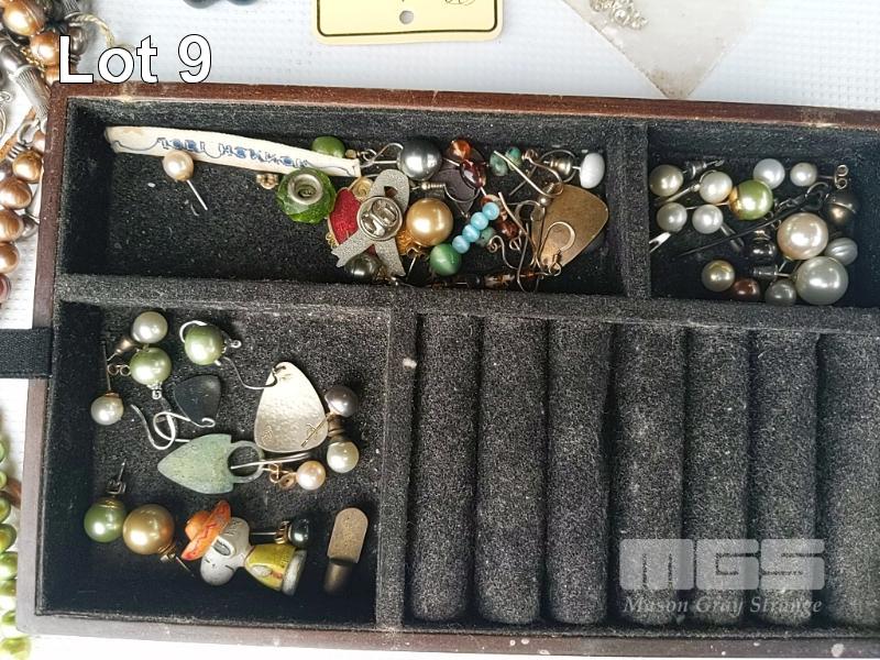 COLLECTION OF COSTUME JEWELLERY IN WOODEN JEWELLERY BOX.