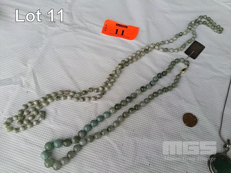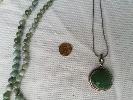 2 x JADE NECKLACES. PENDANT WITH SILVER CHAIN. SILVER EARRING AND DOG TAG.