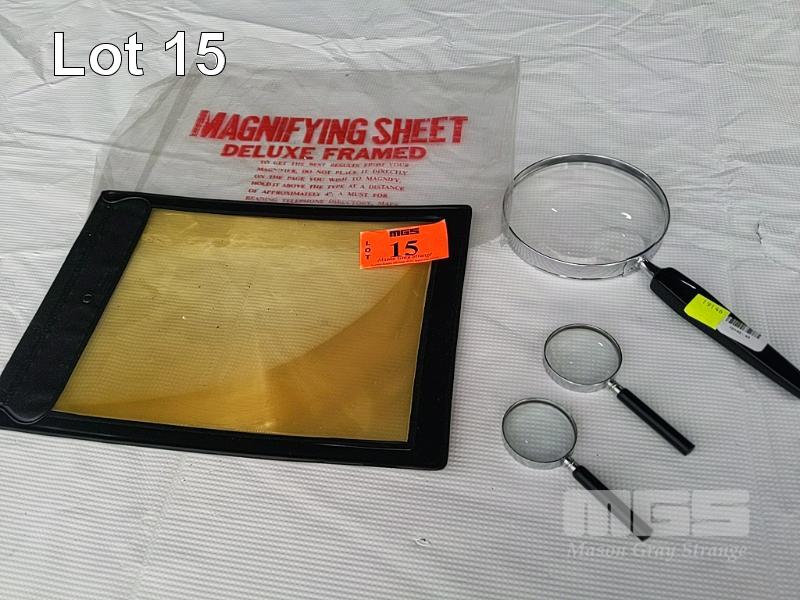 MAGNIFYING GLASSES AND MAGNIFYING SHEET.