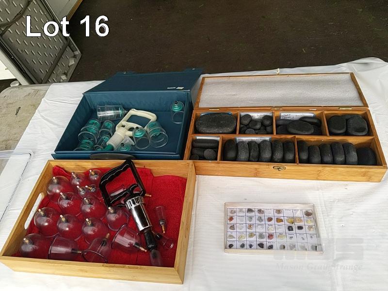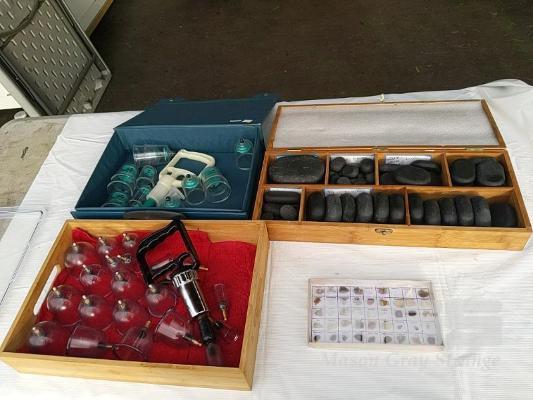 BIO MAGNETIC CUPPING THERAPY CUPS, VARIOUS SIZES WITH HAND PUMPS. BASALT STONE HOT MASSAGE SET. 40 PIECE GEOLOGICAL SAMPLE PACK.
