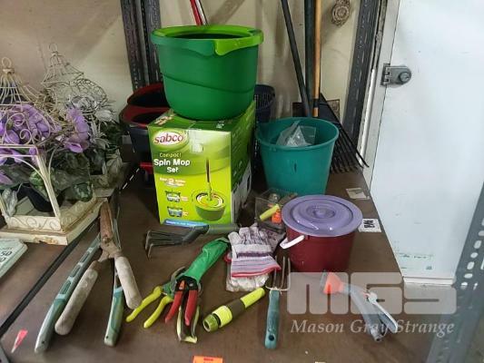 GARDEN IMPLEMENTS AND BUCKETS & MOPS.