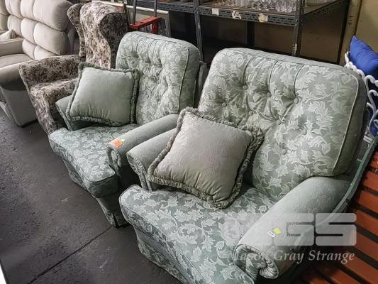 PAIR OF MATCHING FABRIC ARMCHAIRS AND FLORAL FABRIC ARMCHAIR.