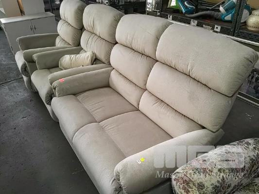 MICROFIBRE LOUNGE SUITE COMPRISING TWO SEATER LOUNGE AND PAIR OF ARMCHAIRS.