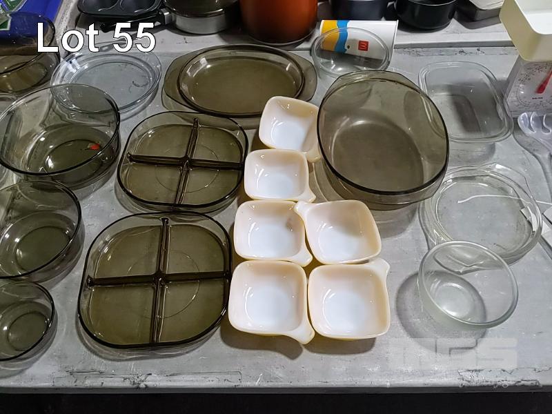 GLASS OVENWARE, SERVINGWARE AND JUGS. PYREX, DECOR, ANCHOR, ARCOROC ETC. 30 PIECES APPROX.