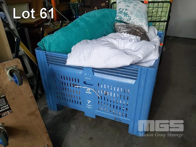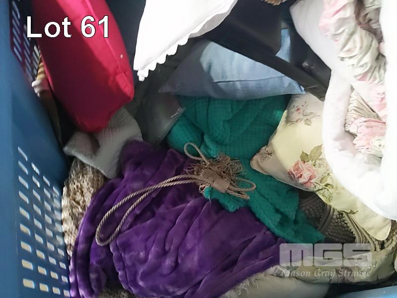 LARGE QUANTITY OF HOUSEHOLD LINEN INCLUDING, COUCH COVERS, DOONAS, THROW OVERS, BLANKETS, BED COVERS, CUSHIONS ETC (1 x CRATE - CRATE NOT INCLUDED)