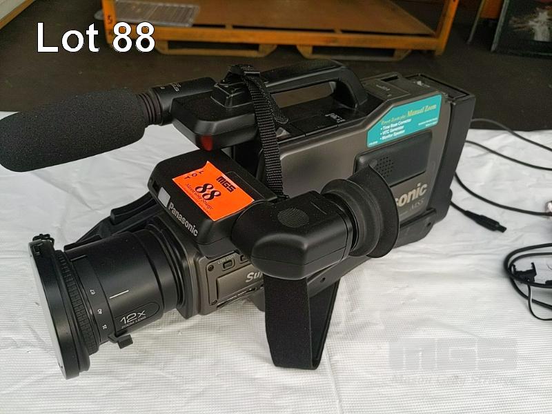 RARE PANASONIC MS5 S-VHS MOVIE CAMERA, NV-MS5 WITH BATTERY, CHARGER & TAPE, ORIGINAL SHOULDER STRAP