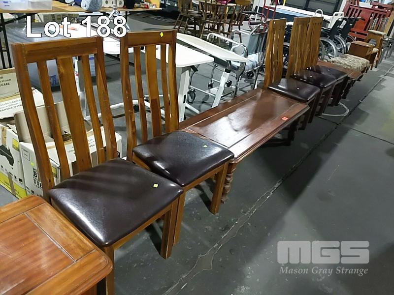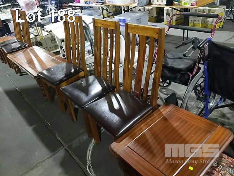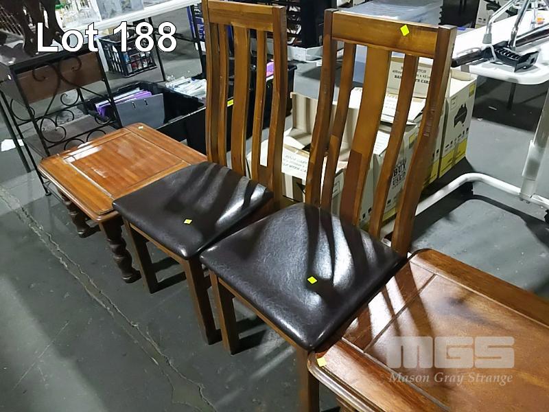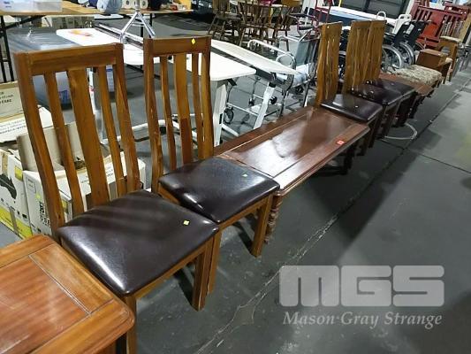 3 x COFFEE TABLES AND 5 x DINING CHAIRS AS A SET.