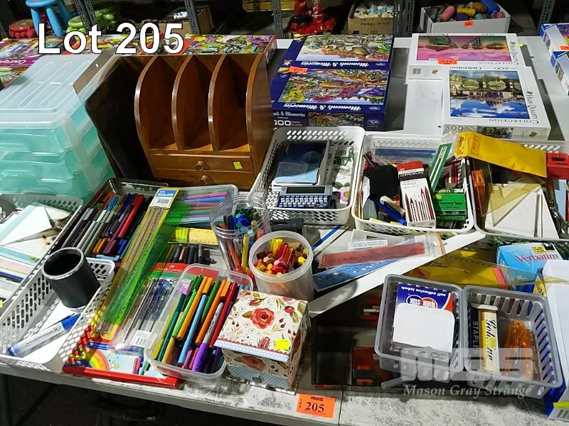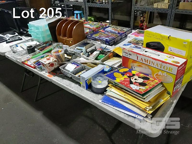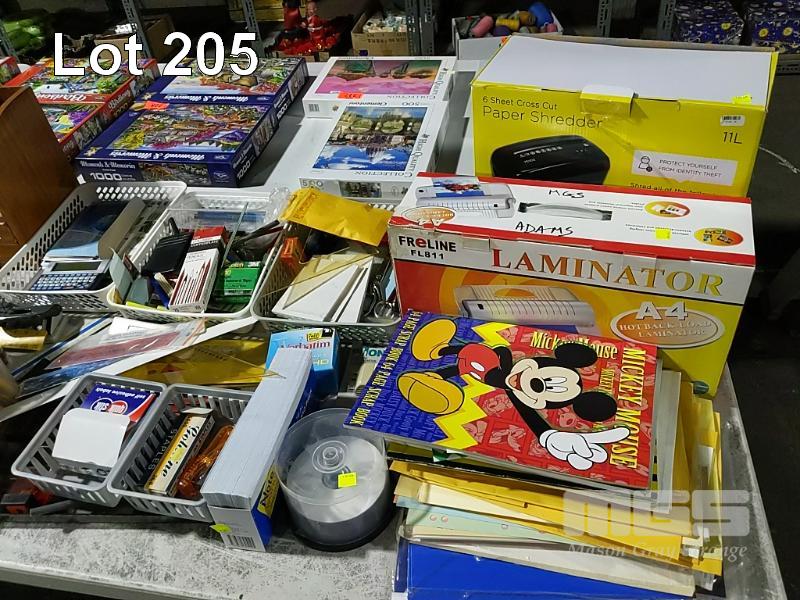 HOME OFFICE SUPPLIES PENS, DOCUMENT DRAWERS, STORAGE TRAYS, CACULATORS ETC. STATIONERY INCLUDING GIFT CARDS, BIRTHDAY CARDS, PADS AND ENVELOPES. FRELINE A4 LAMINATOR. PAPER SHREDDER AND MORE ( 1 X TABLE).