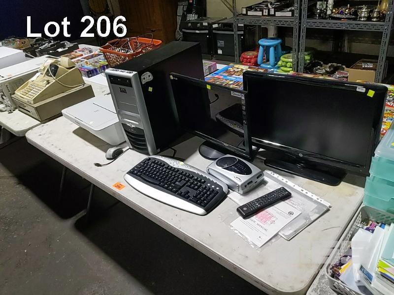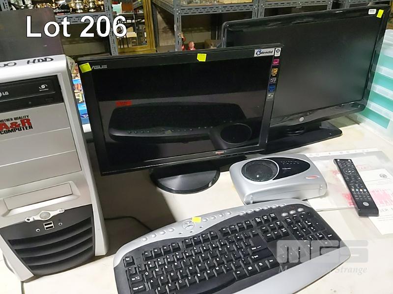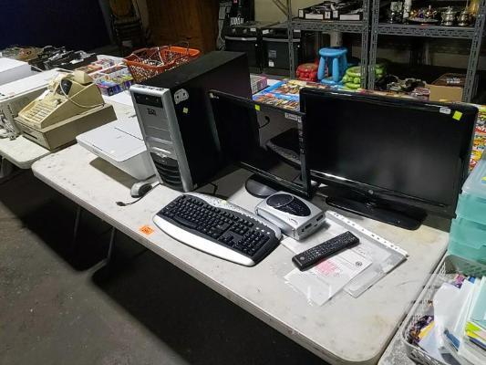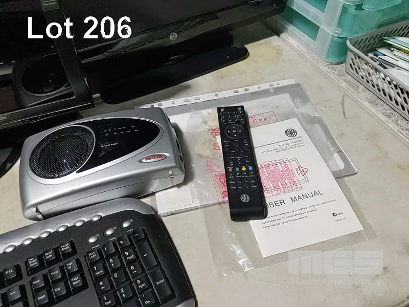AWA 22" TELEVISION (MHDV2211-03-D0) WITH REMOTE. ASUS LCD MONITOR (VW192C). MAXIM PORTABLE RADIO. TEAC PORTABLE CD RADIO CASSETTE RECORDER. CANON PIXMA PRINTER (MG2460). COMPUTER AND KEYBOARD/MOUSE. (COMPUTER DEAD NO HARD DRIVE).