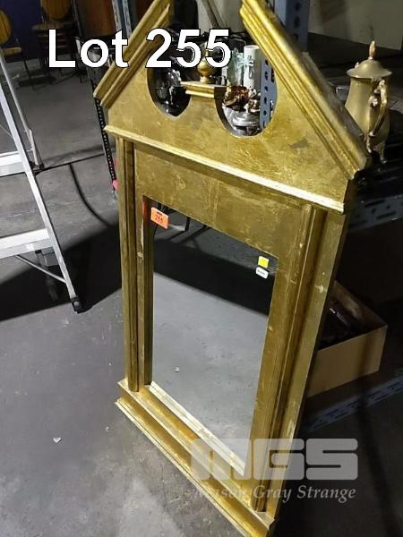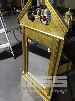 LARGE GOLD FRAMED RECTANGULAR WALL MIRROR IN ANCIENT GREEK STYLE.