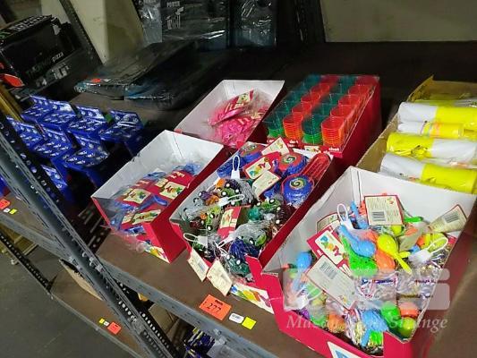 PARTY SUPPLIES, BALLOONS, GIFT TOYS, PARTY SHOT GLASSES, 1 x SHELF