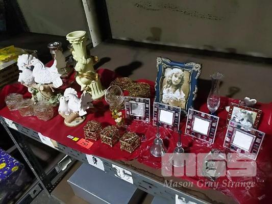 ASSORTED FIGURINES, INCLUDING DOVE & PICTURE FRAMES, 1 x SHELF