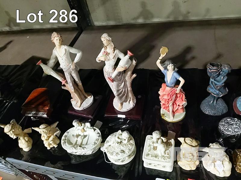 ASSORTED FIGURINES, INCLUDNG ITALIAN VALENTINO FIGURINES, 1 x SHELF