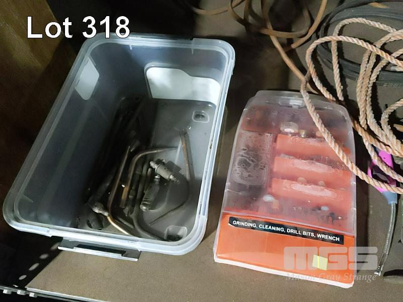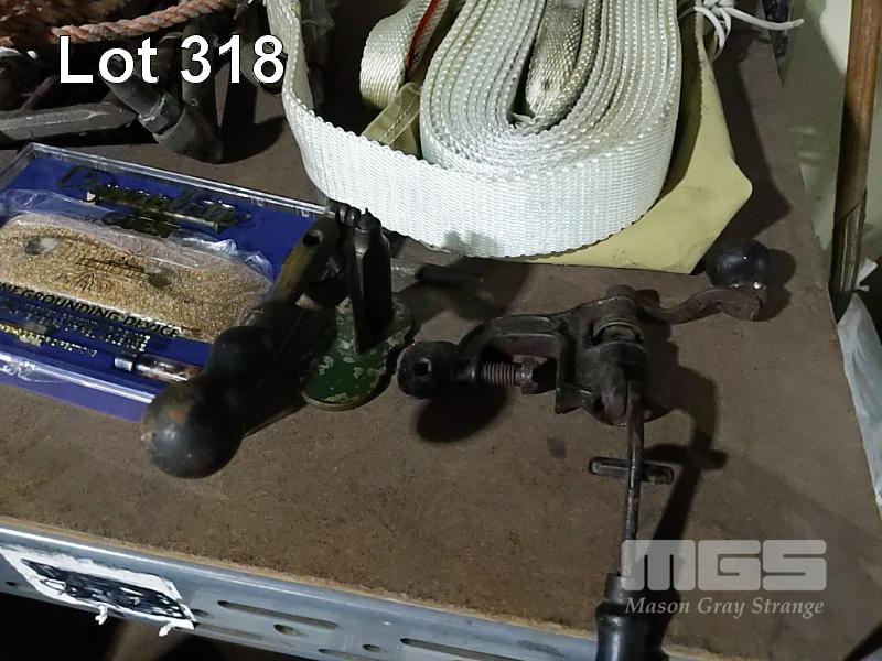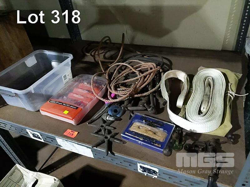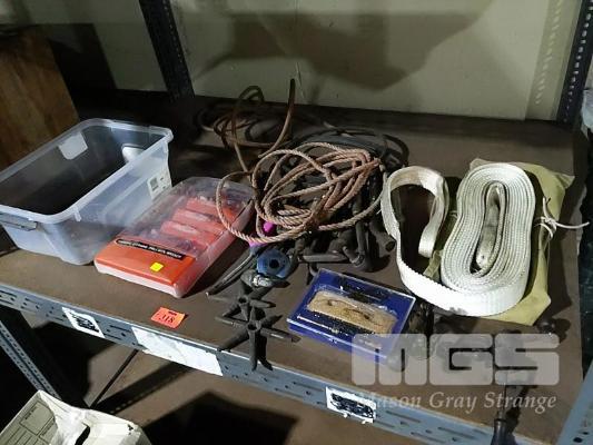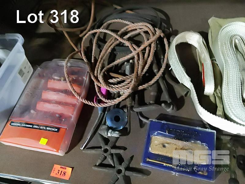OXY ACETYLENE WELDING GAS TIPS , GUNS & HOSE. SNATCH STRAP. GRINDING, CLEANING, DRILL BITS SET. DINAPLATE MARINE GROUNDING DEVICE AND VINTAGE SHOTGUN CARTRIDGE CASE SEALER DEVICE.