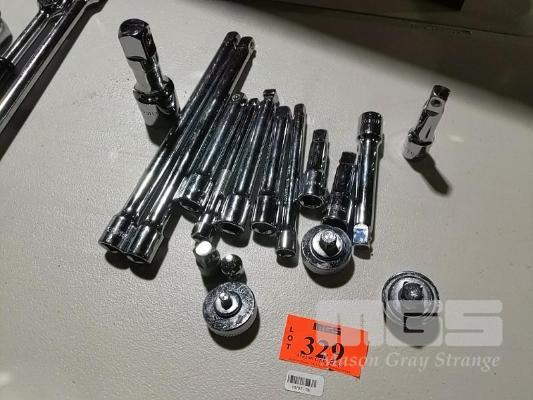 12 x ASSORTED SIDCHROME, TTI AND STANLEY EXTENSION BARS AND 3 x RATCHETS.