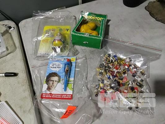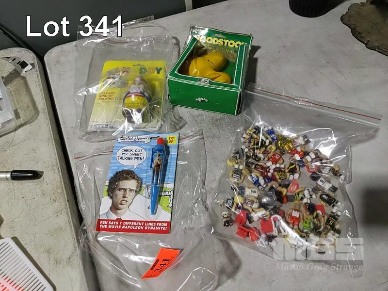 AFL MINIATURES, WOODSTOCK CLIMBING STRING ACTION NODDY, NAPOLEAN DYNAMITE PEN, ETC