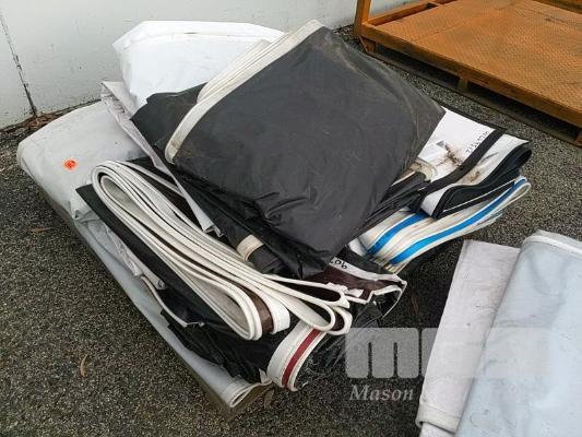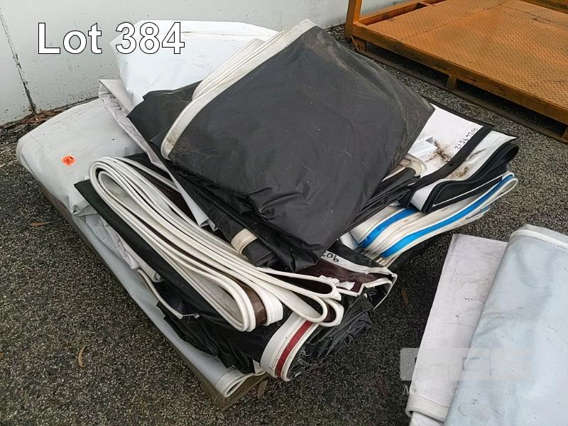12 APPROX x ASSORTED, HEAVY DUTY ADVERTISING TARPS, UNKNOWN SIZES